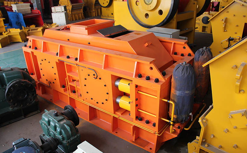 對輥破碎機主要由輥輪、輥輪支撐裝置、壓緊和調節(jié)裝置、再加上驅動裝置組成,液壓輥式破碎機在多加了一個液壓系統(tǒng)(保護裝置)。下面上山友重工工廠生產的對輥式破碎機: