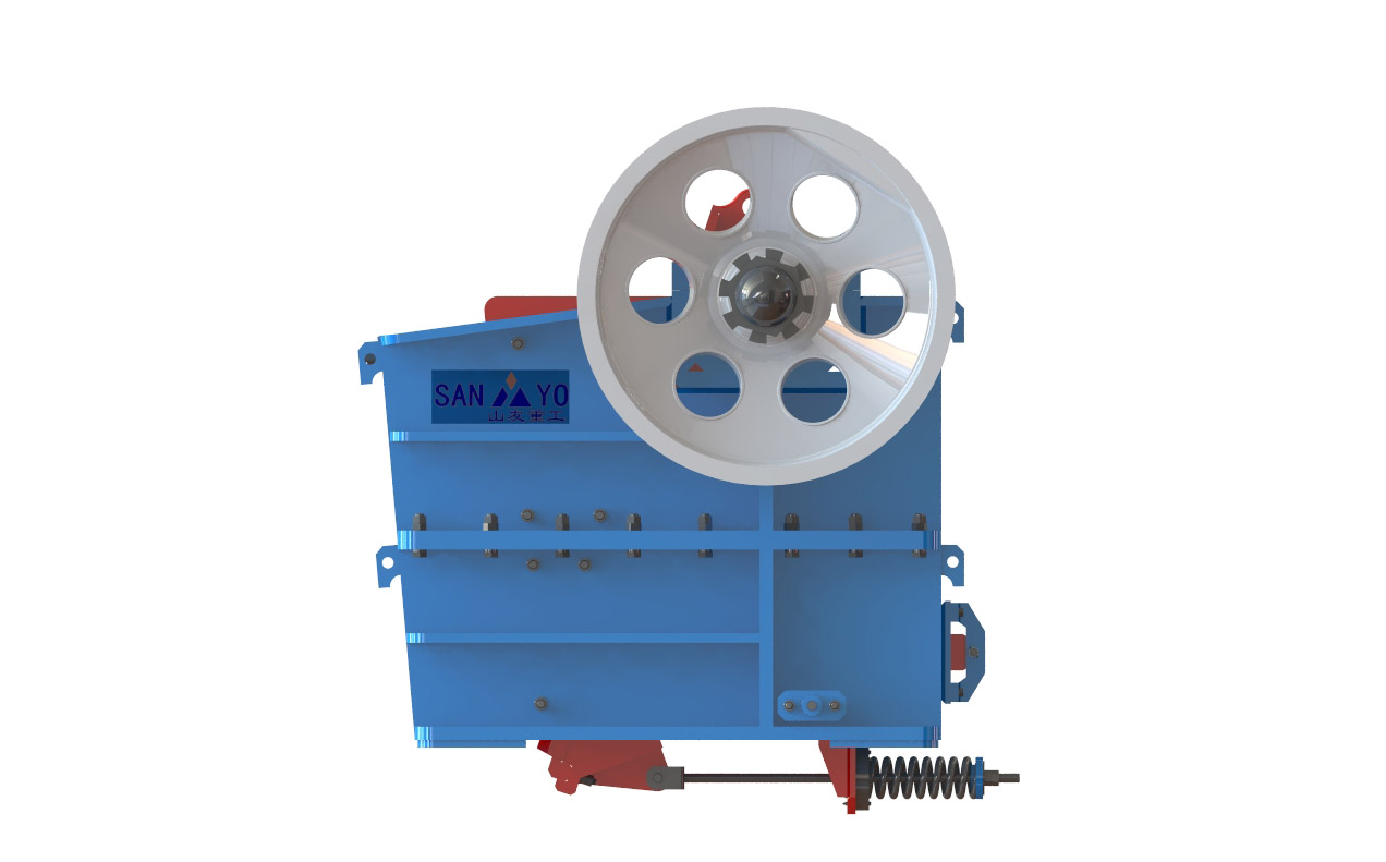 廣義上來講,液壓顎式破碎機是顎式破碎機中的一種,所以,在外觀上,兩者大同小異,不在這一行的話,基本很難區(qū)分(辨別)。液壓顎式破碎機的組成部分除了有和普通顎式破碎機一樣的動定顎板,主軸,軸承,側板,動案板之外,最主要的增加了對動顎板有保護液壓缸系統(tǒng)和肘板。下面,就是sanyyo生產(chǎn)的HV歐版液壓顎式破碎機及結構剖析圖: