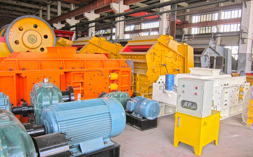 對輥破碎機主要由輥輪、輥輪支撐裝置、壓緊和調節(jié)裝置、再加上驅動裝置組成,液壓輥式破碎機在多加了一個液壓系統(tǒng)(保護裝置)。下面上山友重工工廠生產的對輥式破碎機: