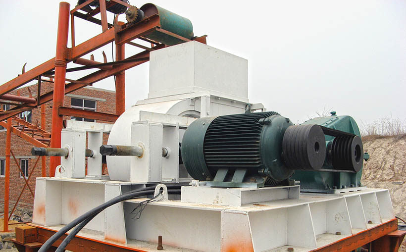 調整兩輥子的間隙,可以控制產品的最大排料粒度(成品料粒度大小);